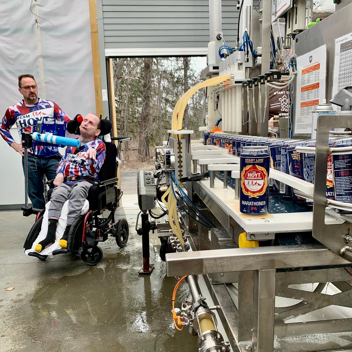 In March, Rick and other family members were on site at the brewery to package a fresh batch of Team Hoyt Marathoner IPA (6% alcohol), which is a New England-style hazy IPA with a twist. The beer can design features silhouettes of Boston marathoners, including Dick and Rick. The packaging also includes information about the upcoming Dick Hoyt Memorial – Yes You Can Run Together race, set for May 27, 2023. A portion of proceeds from Team Hoyt Marathoner IPA will benefit the 26.2 Foundation, a Hopkinton-based nonprofit that invests in programs that promote education, fitness and health.